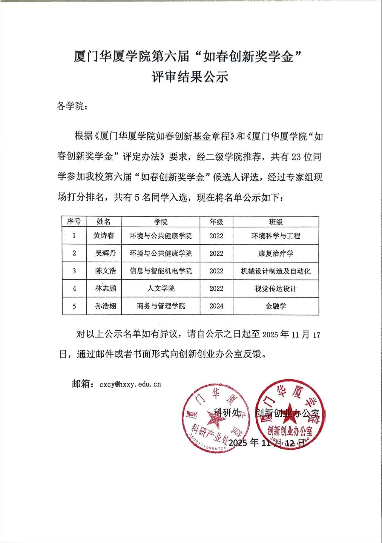 下一条:中国国际大学生创新大赛(2025)厦门华厦学院校级赛成绩公示